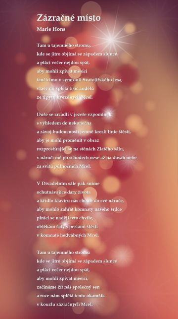 Všestrannost Marušky dokazuje i její dárek pro Chateau Mcely v podobě poezie, kterou i pro Vaše potěšení připojujeme níže.