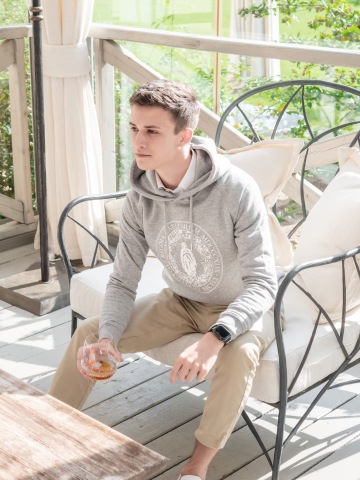 Inspired by the rich history of Chateau Mcely and a symbol of timeless elegance, this light and airy unisex heathered beige T-shirt in high-quality 100% organic cotton with a subtle motif of a fallow deer and an ostrich on the left side is designed by Inéz Cusumano, owner of Chateau Mcely. The image is complemented by the chateau's inspirational message Choose Love Every Day. The T-shirt is subtly branded with a discreet chateau logo on the back.