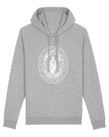 Těšíme se také z kvalitní mikiny s kapucí z organické bavlny, kterou zdobí jemný bílý medailonek s obrázkem Panenky Marie a latinským nápisem „Nebeská královna“ včetně roku Mcelského zázraku. Je to krásný pocit mít Panenku Marii Mcelskou hřejivě přímo u srdce. A konečně vznikla brožurka o Panence Marii Mcelské.