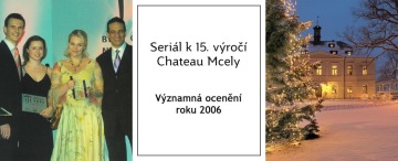 „Závěr našeho seriálu patří krásným vzpomínkám na podzim roku 2006, kdy tvrdá práce po letech přinesla první ovoce. Tehdy jsem pochopila, že můj sen se beze zbytku naplnil. Kromě ocenění od našich hostů se nám dostalo trojice profesionálních vyznamenání, která nás jako mávnutím kouzelného proutku posunula mezi špičkové hotely na mezinárodní úrovni. Vítězný podzim 2006 jsme zahájili přijetím do sítě nejexkluzivnějších malých hotelů světa Small Luxury Hotels of the World. Hotelová asociace cestovního ruchu České republiky nám za úroveň poskytovaných služeb a prostředí přidělila pět hvězdiček a vyvrcholení přišlo ve formě první ceny v prestižní soutěži Nejlepší z realit roku 2006, kde jsme byli vyhodnoceni jako nejlepší hotelový projekt v České republice. Největší radostí byla ale pro mě a mého manžela, naše dcera Julie, která se nám narodila téměř ve stejné době, kdy jsme na zámku přivítali první hosty. Je pro nás stále tou nejzářivější hvězdou, nejšťastnějším znamením budoucnosti, jaké kdy mohlo naši společnou vizi Chateau Mcely požehnat.“