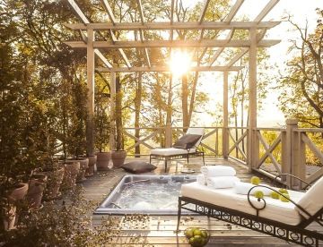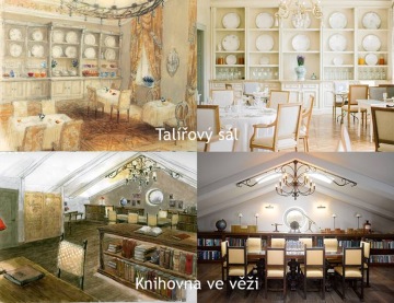Talířový sál je zasvěcen gurmánství, které bude důležitou součástí podzimního času ve Mcelích. Sálu vévodí otevřený příborník s originálními keramickými talíři s květinovými reliéfy, které tomuto sálu daly jméno. Na stěnách a drapériích bohatě kvetou naše hortenzie, originální motiv Chateau Mcely. Prostřední Čajový sál volně navazuje a skýtá díky svým proskleným dveřím možnost vyběhnout rovnou do parku. Na Čajový sál navazuje třetí a poslední Divadelní sál, kterému dominuje klavírní křídlo. Tyto vzájemně propojené přizemní sály dohromady nabízejí přes 150 metrů čtverečných volného prostoru. Jejich zařízení je flexibilní a lze jej snadno přestavět, měnit či uzavírat mohutnými oponami. Sály dnes tvoří naši restauraci Piano Nobile, kterou dotvořilo v průběhu let i celoročně otevřené zahradní patio Bellavista. Pamatujete si, jak vypadaly tyto prostory v roce 2006? Podívejte se! Možná Vás překvapí, že patiu vévodila venkovní vířivka, ve které můžete dnes relaxovat v odpočinkové zóně u přírodního jezírka.