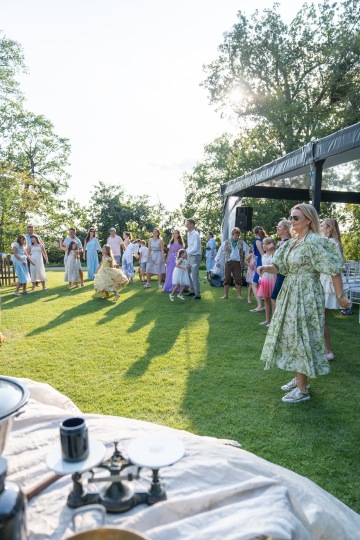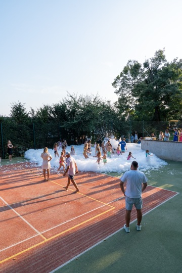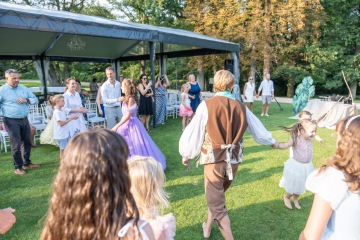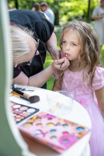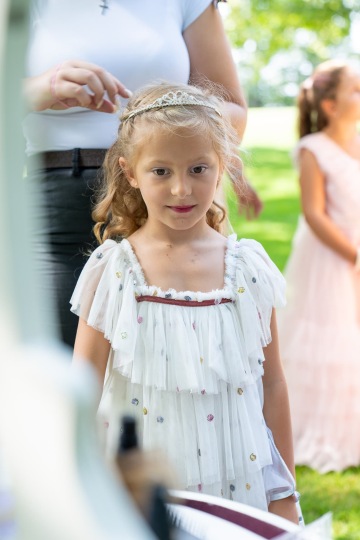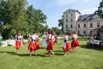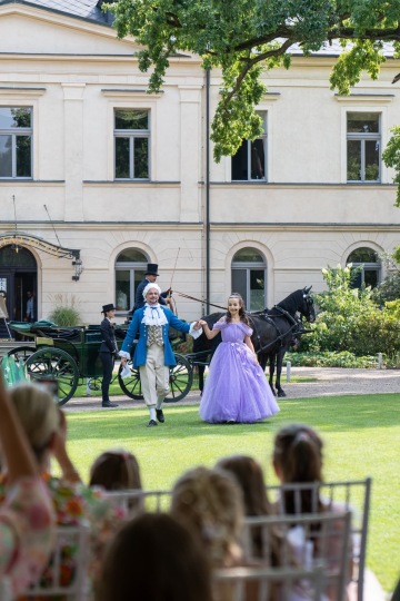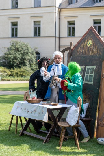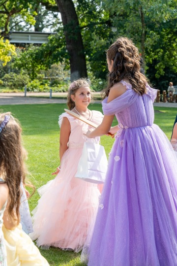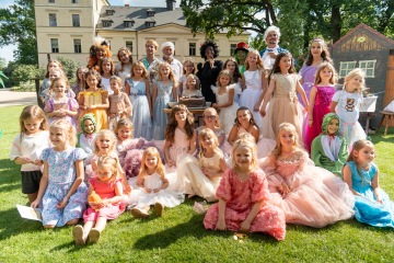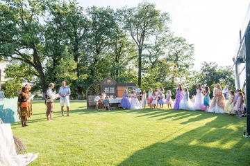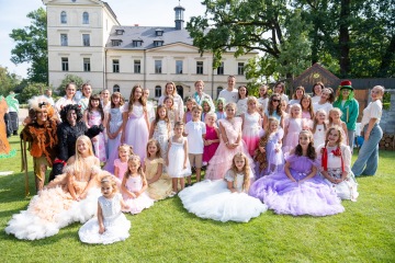 S prázdninami jsme se rozloučili stylově. Sluníčko zářilo nad hlavami rozesmátých dětí, které si od pátku do neděle užívaly pohádkový svět krásné Elišky ze mlejna a naší princezny Nely ve fialkových nadýchaných šatech. Hraná pohádka „Princezna ze mlejna“ pod širým nebem s kulisami pravého zámku a klapotem koní v parku, si získala srdce diváků. Nechyběla korunovace ani módní přehlídka všech princezen a princů, folklórní tance, lidové písničky, kroje i dudačka, čarodějnické lektvary, a dokonce k nám zavítal i živý had Evžen alias Boženka. Všichni si pochutnávali na dobrotách z plotny Elišky i ze zámecké kuchyně knížepána a také na dortu plném peněz či kopečkové zmrzlině na osvěžení. Jezdilo se kočárem s koňmi, užívaly se vodnické hrátky na jezírku, houpací lodičky, zdobily se perníčky, pletly housky, umělecky se tvořilo a nechyběl ani vandrovnický váček s buchtami nebo velké perníkové srdce z lásky jako dárek všem. Vše završilo pole dance čarodějnické vystoupení všech dětí pro své rodiče, kteří byli skvělým publikem. Třešničkou na dortu byla týmová módní přehlídka nové autorské kolekce Mcely Birds, Inéz Cusumano. Největší radost ale způsobila záplava večerní pěny v parku, kterou si užili i někteří rodiče. K tomu nás hřeje také dobrý pocit, že i letos odešla nemalá částka z našeho výtěžku na charitativní pomoc nymburskému Centru pro všechny.