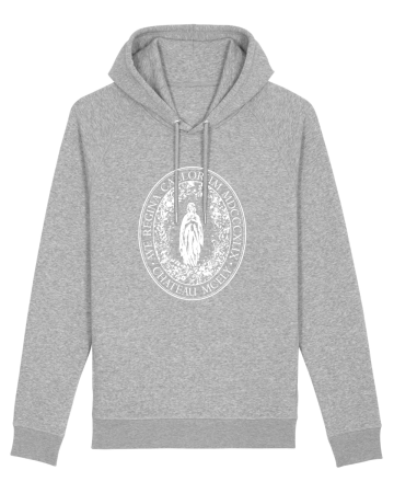 The collection is currently made up of a larger image of the Heavenly Queen of Mcely and a soft hoodie of high quality organic cotton, for which Inéz designed a delicate “university-style” white medallion featuring Alena’s image of the Heavenly Queen of Mcely with the inscription "Queen of Heaven” in Latin and the year of the Mcely Miracle.
