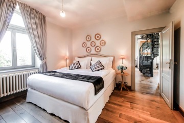 Prezidentské apartmá Agape sídlí ve věži zámku. Mezonetové apartmá disponuje krbem, plně vybavenou kuchyní s jídelnou, dvěma ložnicemi, designovým točitým schodištěm a odpočívadlem pro pohodlné a ničím nerušené přečtení knihy. Užijete si také privátní vstup do knihovny a na střešní observatoř.